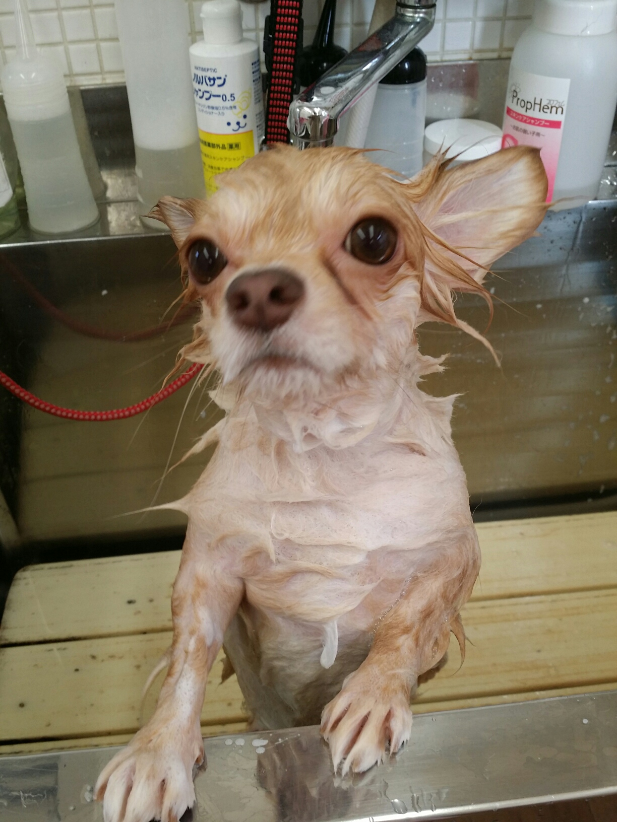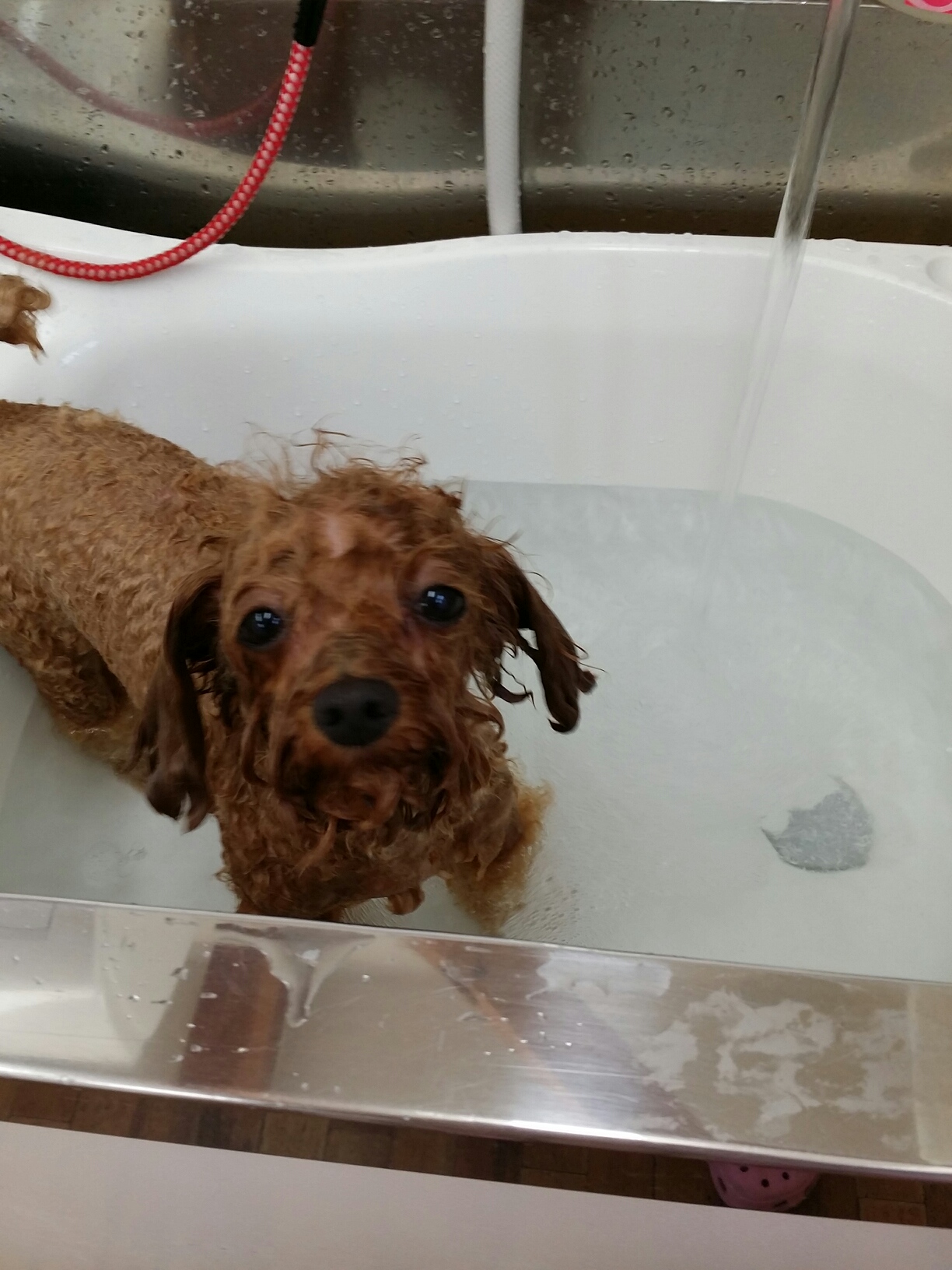チワワのココアくん。炭酸沐浴(o^^o)♪