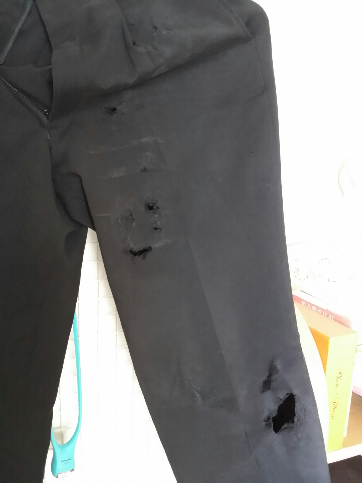 長男自転車で転けてズボンビリビリにし~の