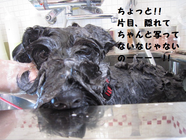 モコちゃん、シャンプーしてる時、ウィンクしてるみたい♪