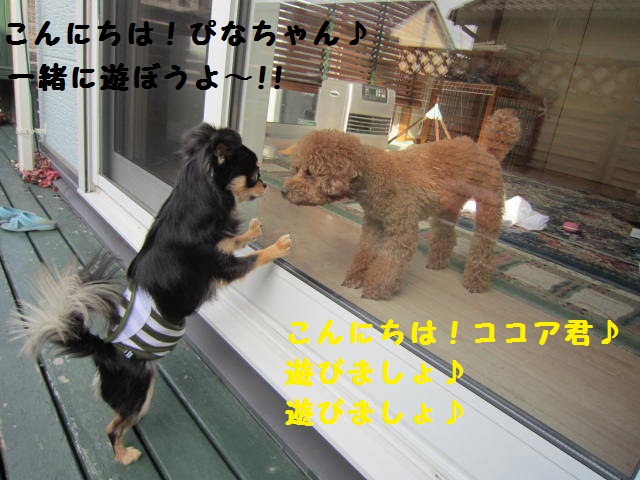 ガラス1枚あると、ぴなもシッポを振って