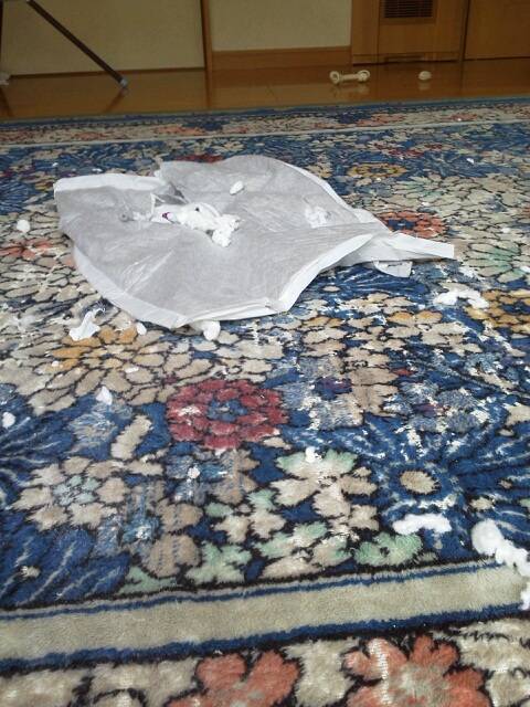 グシャグシャ、ビリビリにされたオシッコシーツの残害(≧Д≦)