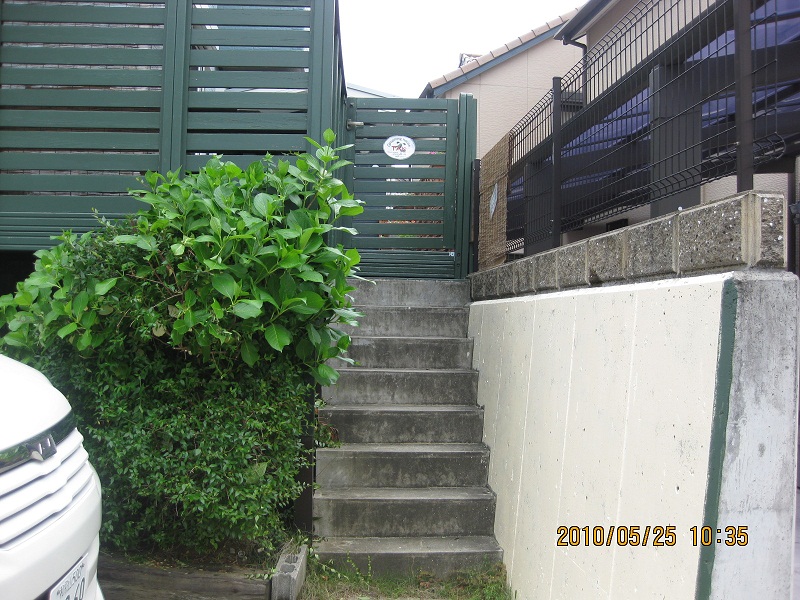 駐車場横の階段を上って頂くと…