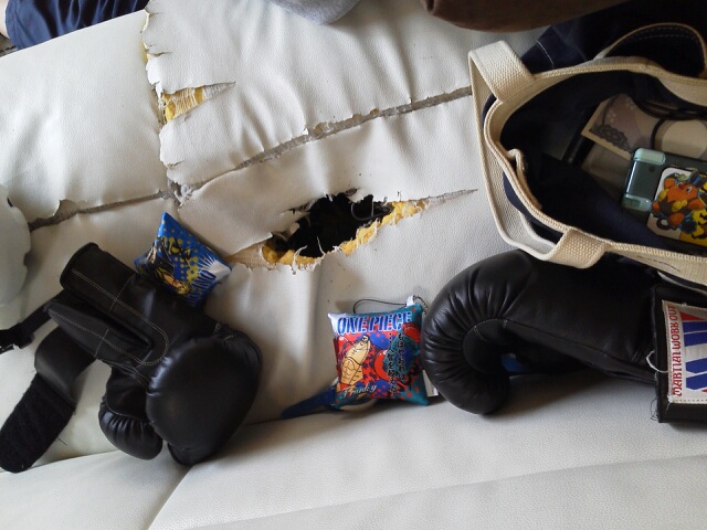誰もこの、ブラックホールのあるソファーには座りません(~。~;)